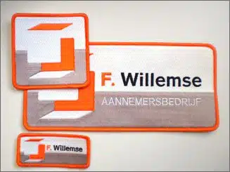 Een geweven badge is veel scherper en verfijnder dan een broderie badge, deze producten kunnen we vanaf 50 stuks maken. Een broderie badge daarentegen is grover geborduurd en ook vanaf 50 stuks verkrijgbaar! Broiderie badges worden geborduurd op een bestaand stuk ondergrond. Levertijden van deze producten zijn 4 dagen voor uitmonstering (foto via mail) en een week levering. U heeft hierbij keuze uit vele kleuren en extra’s. Dit hebben we in een speciale folder voor u op een rijtje gezet.